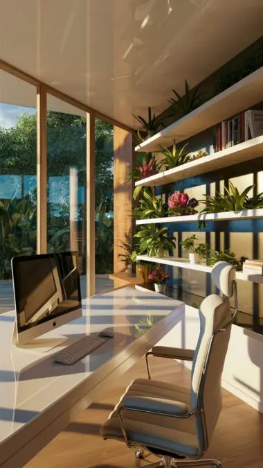 Adding natural elements to your home office setup can calm and refresh you. Think about adding one or many indoor plants or even a small garden. Nature’s calming effect can lower stress and lift your mood, making you more focused and creative.