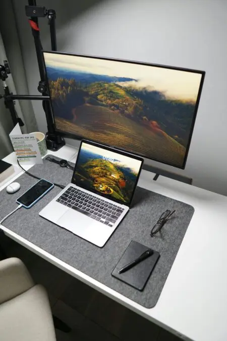To further amplify your working from home experience, it’s essential to focus on enhancing productivity. Getting a second screen is a home office tech must-have, but you can’t fully thrive without other essential strategies. Such as setting daily goals, creating a dedicated workspace, and taking regular breaks. Prioritising tasks, eliminating distractions, and establishing a routine are all key components to boosting productivity and ensuring that you are making the most of your home office setup. By incorporating these practices into your daily routine with a dual screen, you’ll be able to work smarter, not harder, and achieve optimal results in your home office. Check out my go-to second screen, a Samsung 32″ curved gaming monitor, great for work and play.